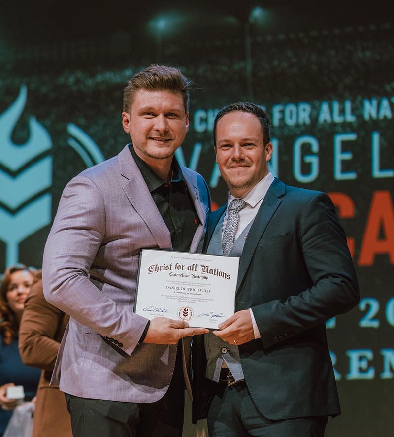 In 2014, Daniel received a vision from God for a large-scale evangelistic event and subsequently attended the School of Evangelism with Reinhard Bonnke at Christ for All Nations. In 2015, Daniel initiated and organized the large-scale evangelistic event “Love Würzburg” in collaboration with local churches and congregations, attracting over 4,500 guests to the basketball arena in Würzburg. Through this event, over 800 people came to faith in Jesus. During this time, Jesus sharpened Johanna and Daniel’s calling for evangelism and full-time ministry. Daniel also graduated from the School of Awakening at Awakening Europe.